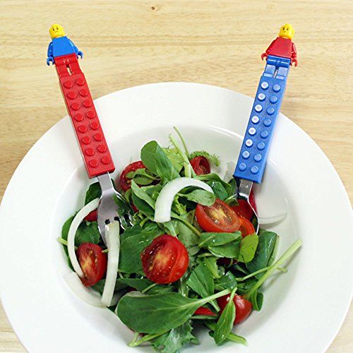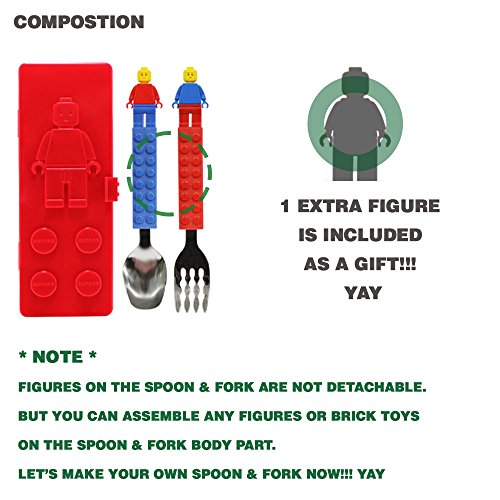 Brick Figure Flatware Spoon Fork Utensil Case Set Toddler Kids Children (NON-TOXIC MATERIAL USED PRODUCT) (Red)