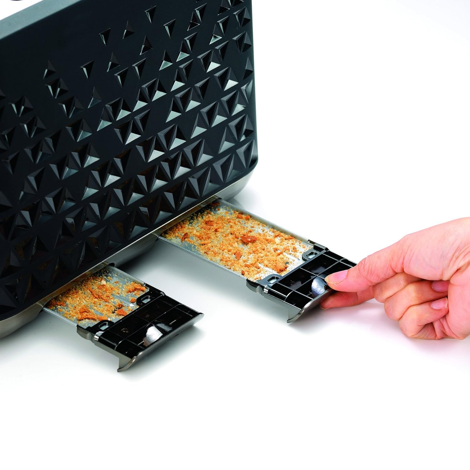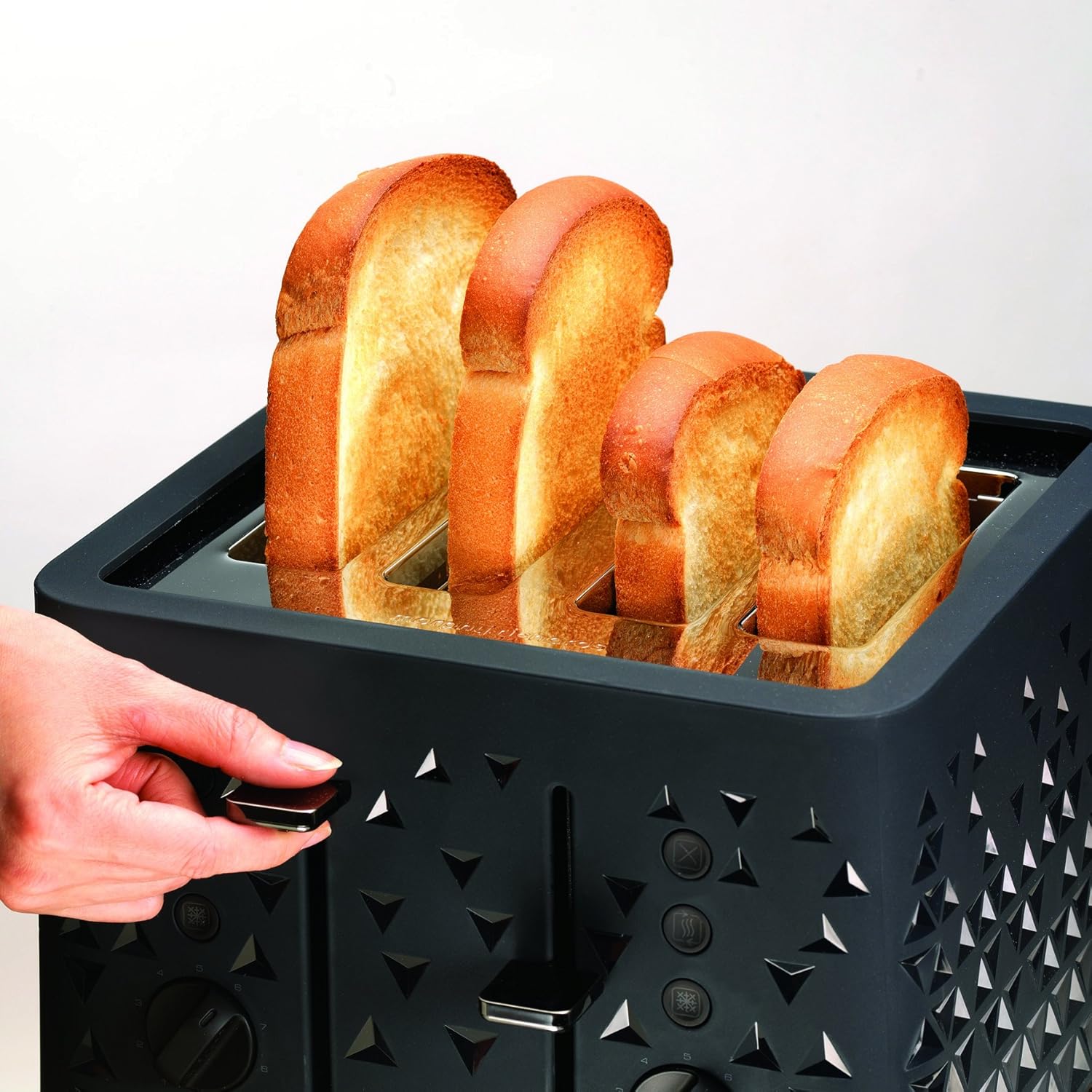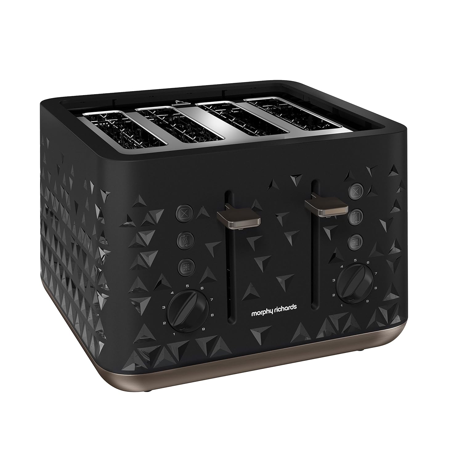 Give your kitchen the verve and pizzazz that it deserves with the bold design and exceptional performance of the Black Morphy Richards Prism 4-Slice Toaster.