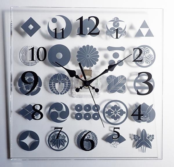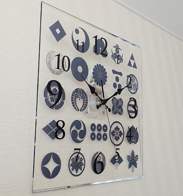 | アクリル素材の時計に家紋がプリントされたスタイリッシュな「和」の時計です。専用のBOXに入れてお届け致しますので、自分用はもちろんプレゼントにもピッタリです♪ |