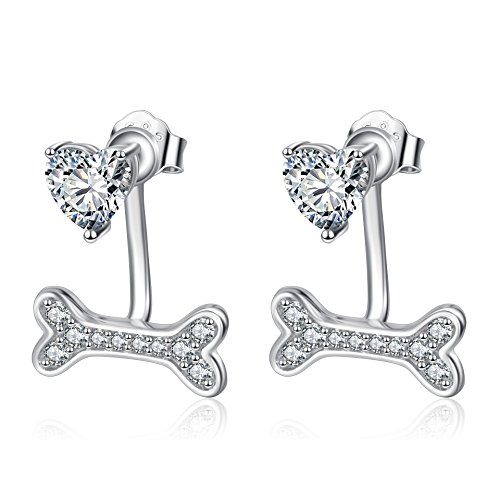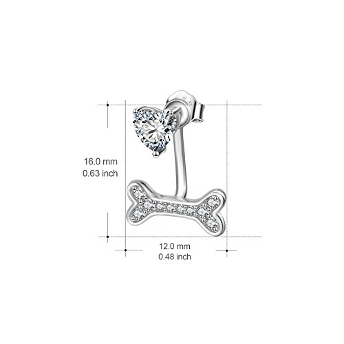 Womens Jewelry 925 Sterling Silver Dog Pet Animal Bone with Heart Crystal Stud Earrings IS A Good Choice As A Gift In All Department Or Kinds Festivals.