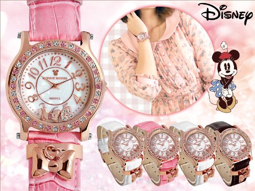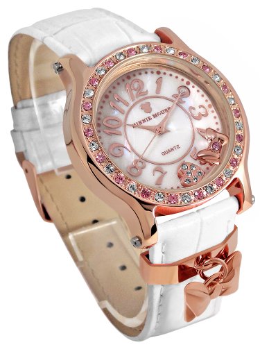-. Title : Disney ディズニー ミニーリボン チャーム 腕時計 ホワイト × ミックスカラー 文字盤 本牛革 ベルト スワロフスキー 白 【並行輸入品】