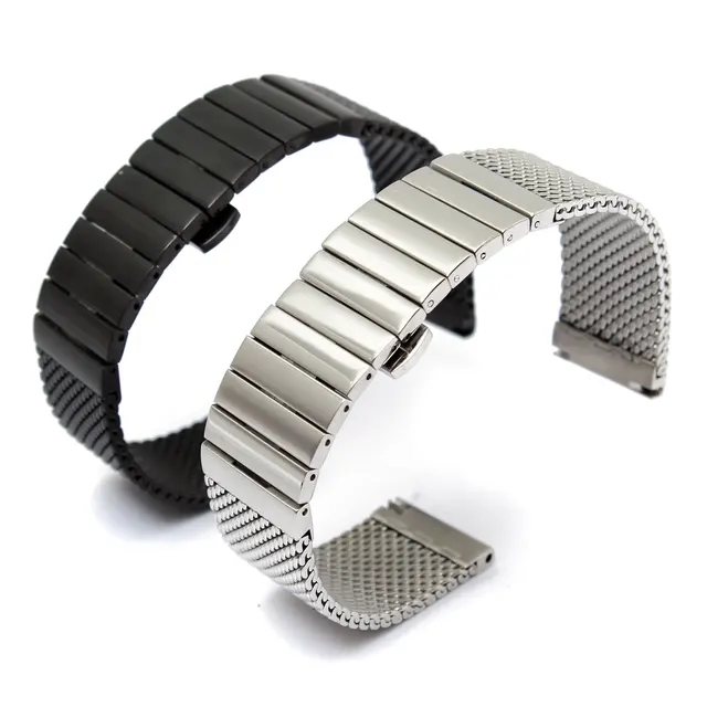 | [해외] 아름다운 디자인 20 미리메터 줄 실버 블랙 스테인레스 스틸 손목 시계 스트랩 메쉬 푸시 버튼 스트레이트 금속 시계 팔찌 |