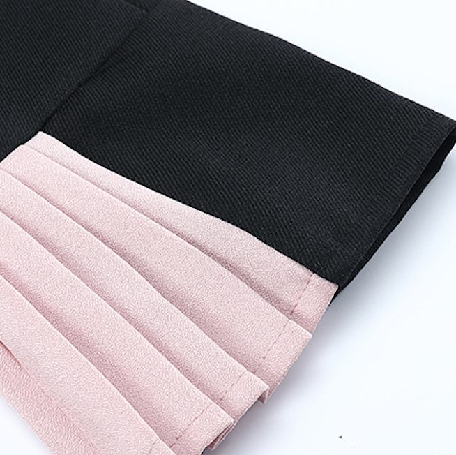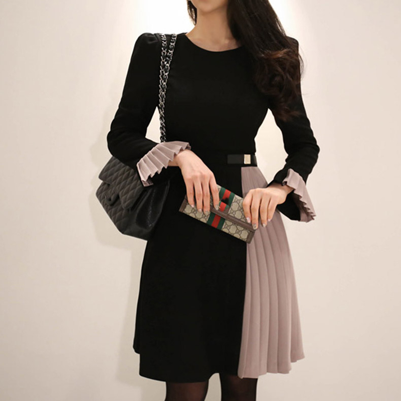 プリーツ 切替 クルーネック バイカラー ミニ丈 ワンピース きれいめ ベルト タイト フェミニン フリル デート