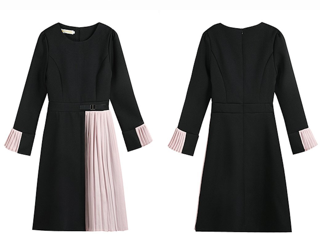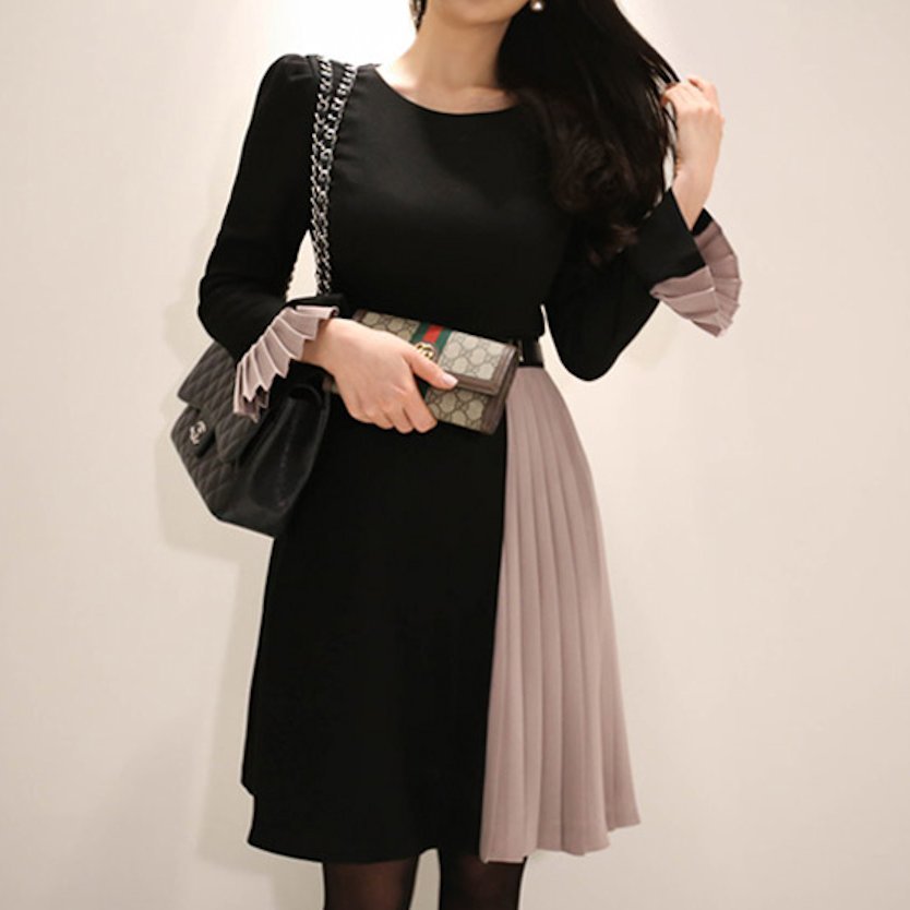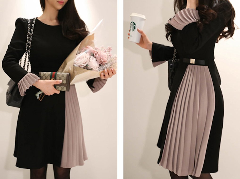 プリーツ切替にバイカラー配色がとっても新鮮で可愛いワンピース。