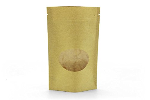Built in oval window, zip lock, and tear notch. Pouches are great for packaging and displaying products (e.g. baked goods, confections, coffee, tea, snacks, and much more). Perfect for selling your goods to customers.