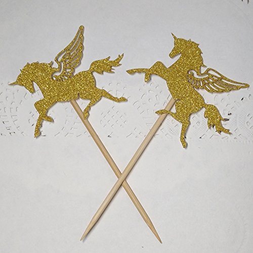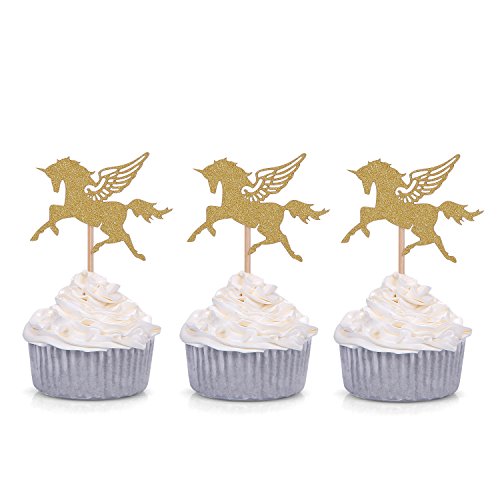 30 CT Golden Unicorn Cupcake Toppers by Giuffi