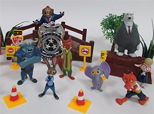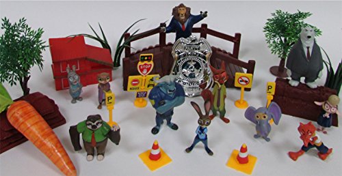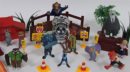 ZOOTOPIA 20 Piece FIGURE PLAY SET Featuring Judy Hopps, Nick Wilde, Major Lionhart and Themed Decorative Accessories - Figures Average 1.5" to 3" Tall