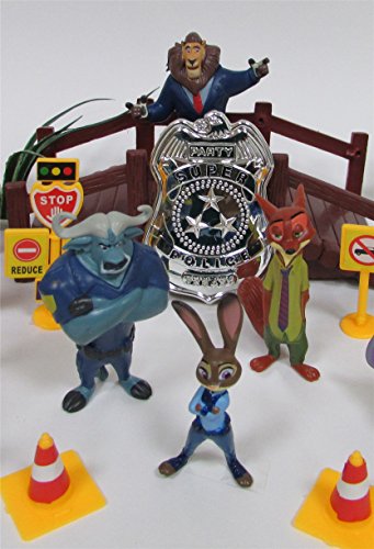 ZOOTOPIA 20 Piece Birthday CAKE Topper Set Featuring Judy Hopps, Nick Wilde, Major Lionhart - Themed Decorative Accessories Including Police and Parking Meter Items - Figures Average 1.5" to 3" Tall