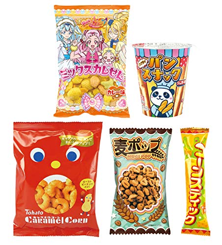 原材料:【スナック菓子(パンスナック・シュガー味)】小麦粉、ファットスプレッド(植物油脂、砂糖・ぶどう糖果糖液糖、その他)、砂糖、マーガリン、食塩、イースト、粉末麦芽、乳化剤、香料、イーストフード、酸化防止剤(ビタミンE)、ビタミンC、着色料(カロチン)、(原材料の一部に乳成分、大豆を含む)【スナック菓子(キャラメルコーン)】コーングリッツ(遺伝子組換えでない)、砂糖、植物油脂、落花生、マーガリン、牛乳、食塩、クリーム(乳製品)、ハチミツ、キャラメルペースト、ソルビトール、カラメル色素、香料、調味料(アミノ酸等)、(原材料の一部に大豆を含む)【スナック菓子(プリキュアミックスカレせん・カレー味)】小麦粉、植物油脂、でん粉、砂糖、食塩、香辛料、コーンパウダー、ホタテエキス、昆布エキス、えび粉、あおさ、カツオエキス、膨脹剤、調味料(アミノ酸等)、着色料(クチナシ、アナトー、ベニコウジ)、香辛料抽出物【菓子(麦ポップ)】小麦、砂糖、乳糖、食塩、着色料(カラメル色素)【スナック菓子(コーンスティック・チーズ味)】コーングリッツ(遺伝子組換えでない)、植物油脂、乳糖、砂糖、ぶどう糖、食塩、チーズパウダー、香辛料、蛋白加水分解物、調味料(アミノ酸等)、酸味料、卵殻未焼成Ca、香料、パプリカ色素