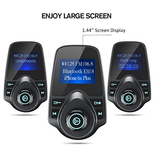 √ BIG LCD DISPLAY-- Enjoy large 1.44 inches screen for navigating throughout the devices software interface.Car battery voltage level will be detected and displayed while the car starts. And phone number for incoming calls & name of songs playing through TF Cards could be displayed as well (songs via Bluetooth will not display)