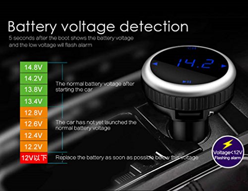 There are many kinds of Bluetooth FM transmitter, but this one is very special.The Newest Version LED FM Transmitter is an upgrade version from the previous LED FM transmitter.The Fm transmitter has two USB ports, one designed for charging and other one for reading USB files;Its amazing LED display enables you the current voltage of the storage battery of your car, also the caller ID and song files.Work with iPhone (max speed), iPad (max speed), iPod, HTC, Galaxy, Blackberry, MP3 Players, Digital Cameras, PDAs, Mobile Phones.