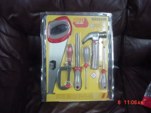 Studio : RED TOOLBOX Publisher : RED TOOLBOX Binding : Toy Product Description BRAND NEW,FACTORY SEALED.RED TOOLBOX Includes:8 Piece set.. Goggles, Tape Measure, Philips Screwdriver, flat screwdriver, Hammer, Saw, File, 2" clamp