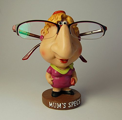 Studio : Joe Davies Publisher : Joe Davies Binding : Eyewear Product Description Comical Mum Spectacles Stand / Holder Ever see mum struggling to find a place to put her glasses or is she forever misplacing them. This mum glasses holder will be a perfect solution to all those problems. The comical holder is made from a polyresin material and to the base you have the wording "Mum's Specs" The nose of this lovely lady is slightly upturned so that the spectacles can rest on it. The height is approx.14 cm and the diameter of the base 6 cm. 0