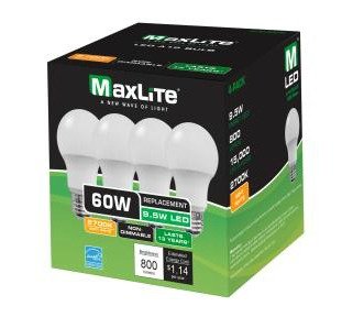 Maxlite 9.5 Watt (60 Watt Equivalent) Soft White LED Non-Dimmable 2700K - 1 Box (4 Bulbs Total)