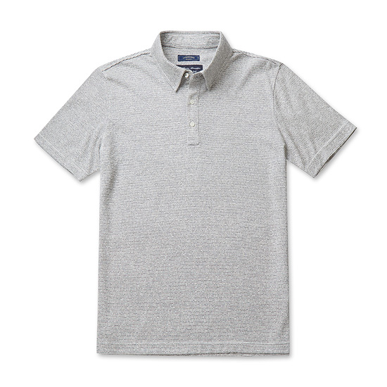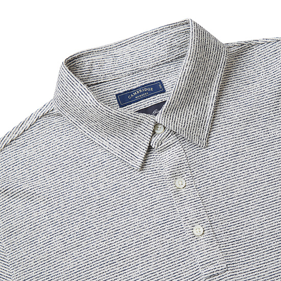 - 스트라이프 패턴과 부클 원단을 적용한 남성 카라 티셔츠.
