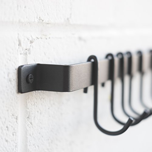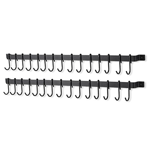 WALLNITURE Kitchen Rail Organizer Iron Hanging Utensils Rack with Hooks Frosty Black 30 Inch Set of 2