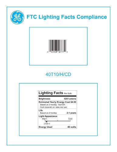 GE Lighting 16777 40 Watt Halogen Tubular T10 Light Bulb, 1-Pack