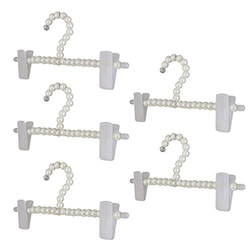 -. Title : Dovewill 5Pcs Pearl Beaded Trousers Pants Hanger Clothes Dress Holder Rack with Clips/Pegs for Home Boutique Wedding Shop Decor - white, 24cm