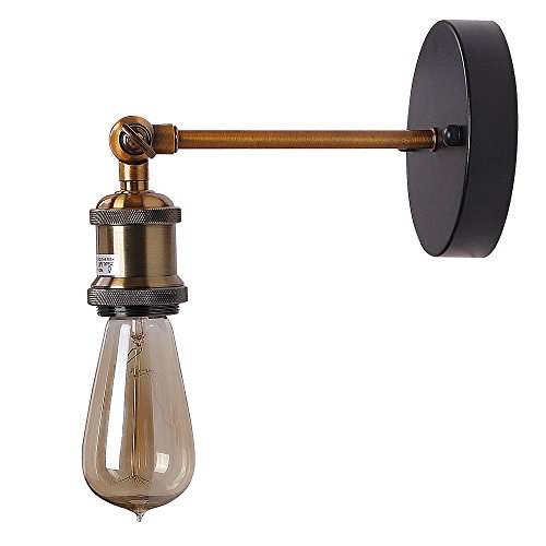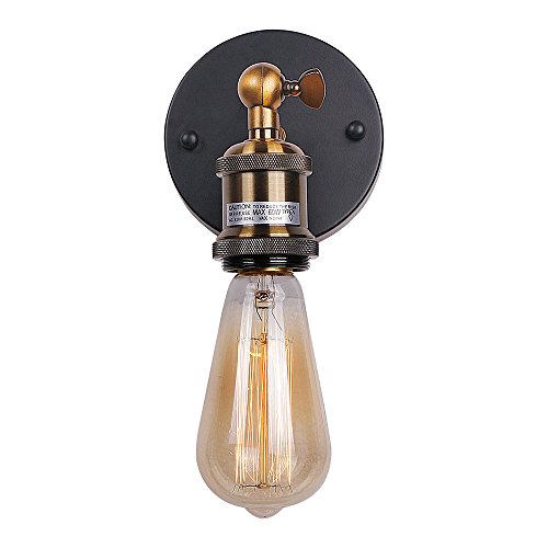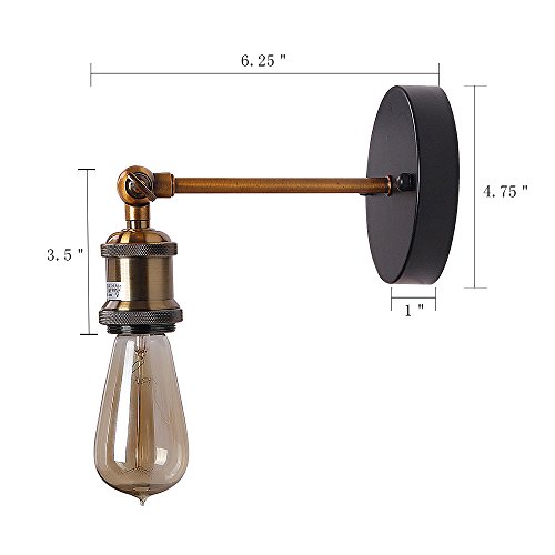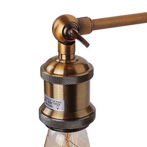 Anmytek Wall Light Fixture, Industrial Retro Rustic Loft Antique Wall Lamp Edison Vintage Pipe and Brass Head Wall Sconce Decorative Fixtures Lighting Luminaire (Bulbs not included)