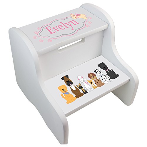 -. Title : Personalized Pink Dog White Two Step Stool