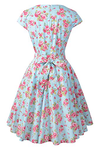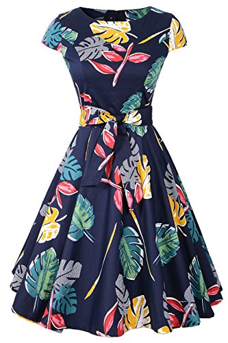 Cap sleeve floral print old-fashioned vintage dress with belt