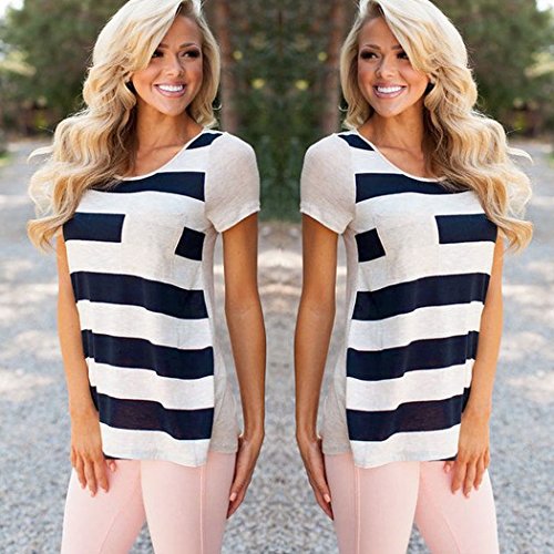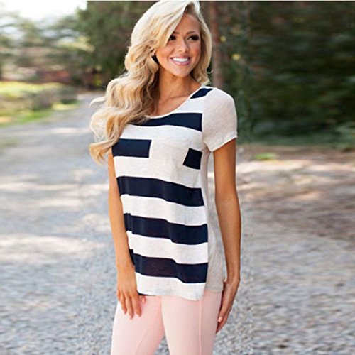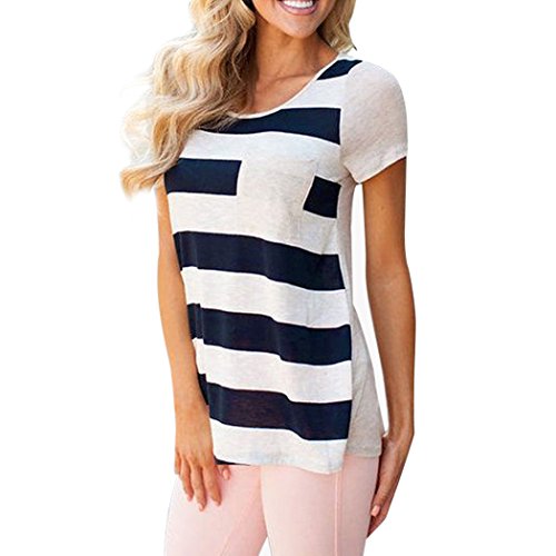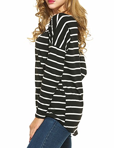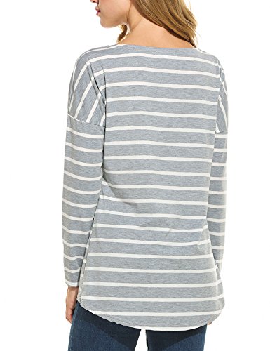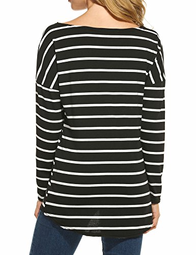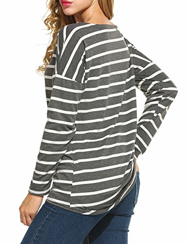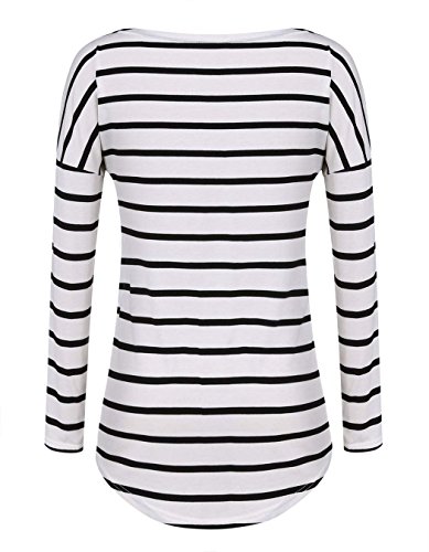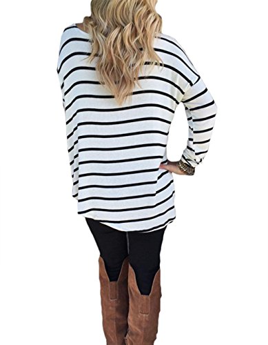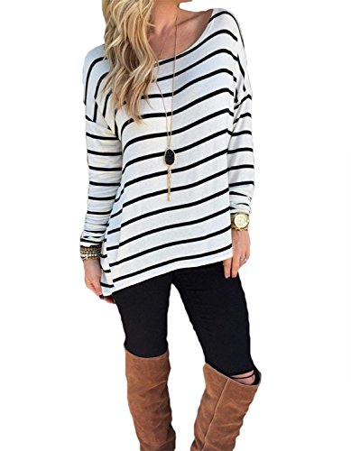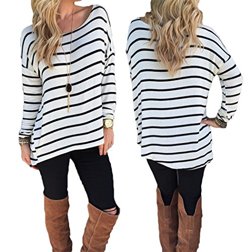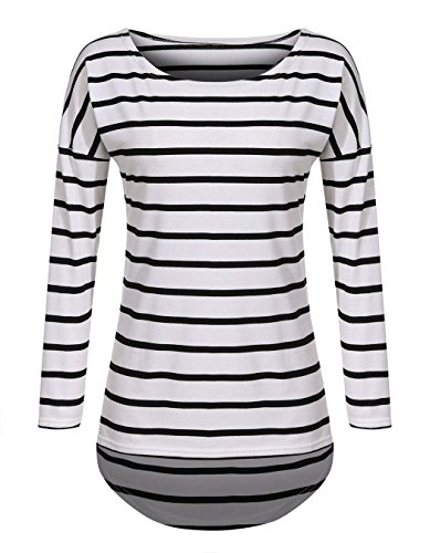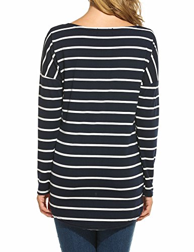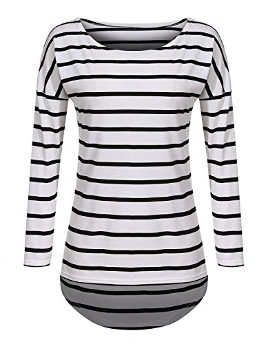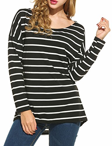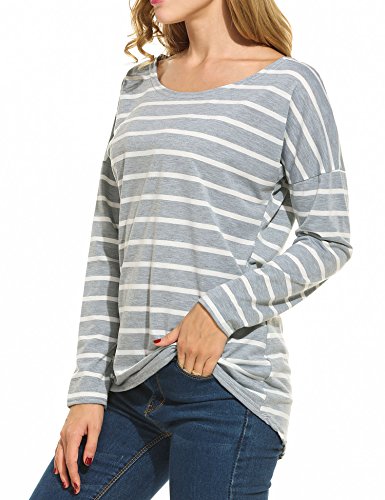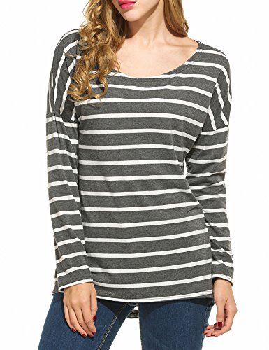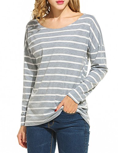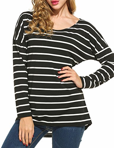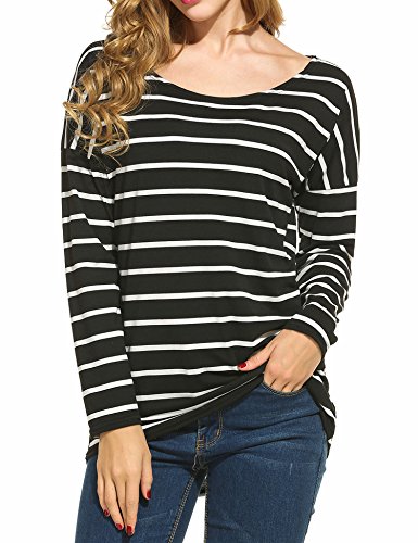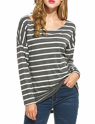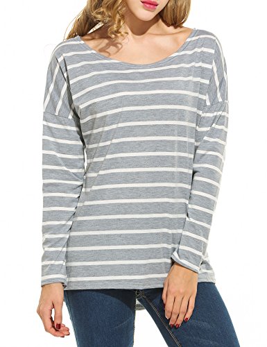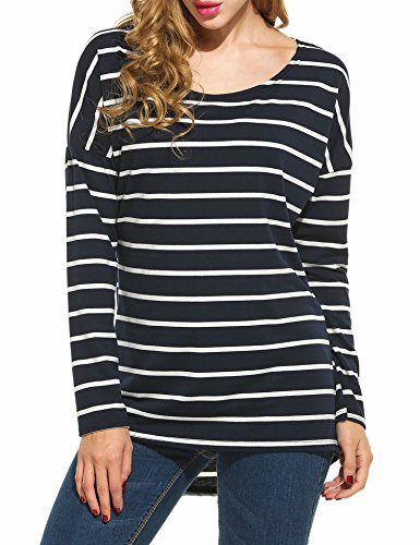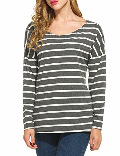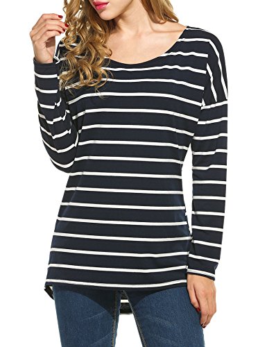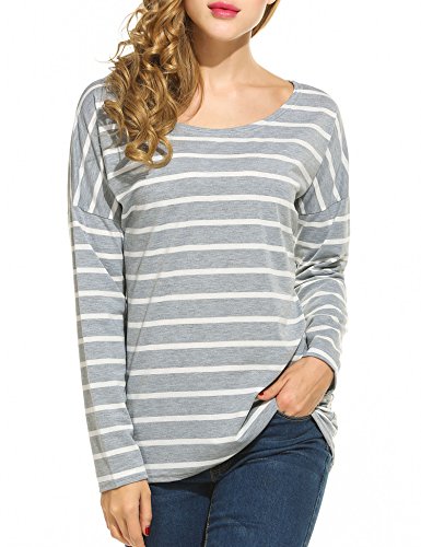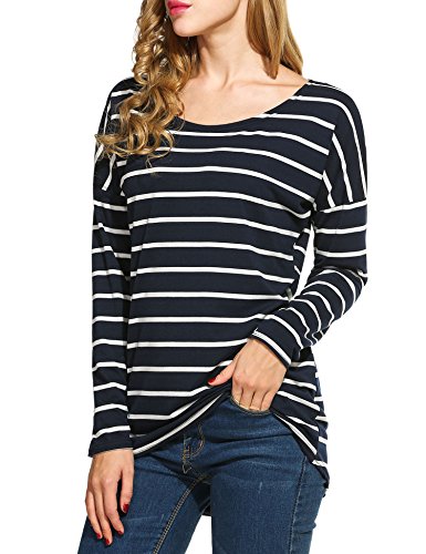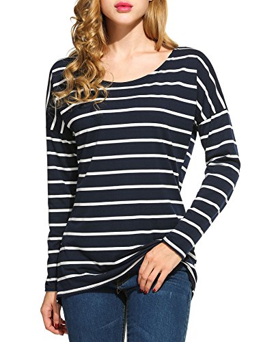 eshion Women's Round Neck Striped Stretch Basic T Shirt Tops Long Sleeve Blouse