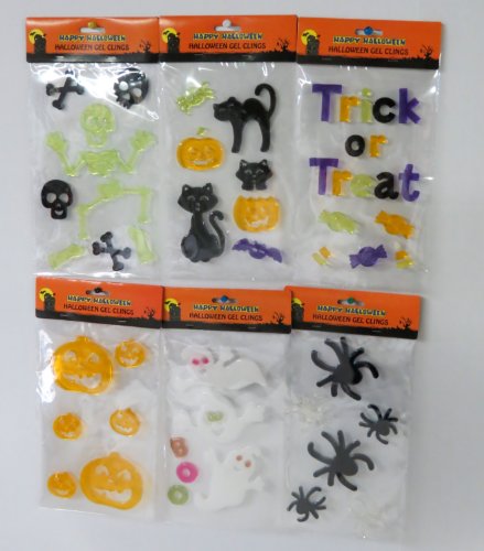 Halloween Window Decorations - 6 Random Sets of Halloween Gel Art