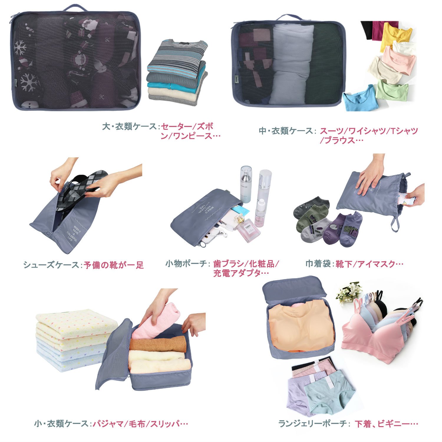 (Large, medium and small), lingerie pouch, shoes bag, accessories pouch, drawstring bag