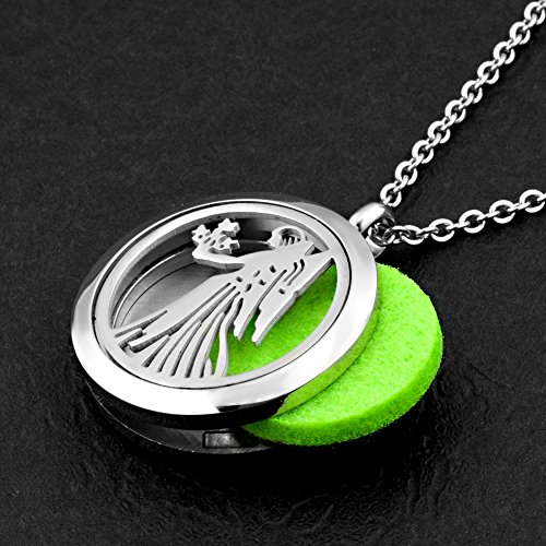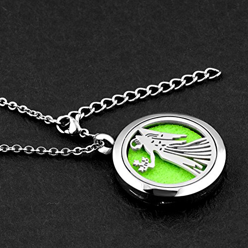 Third Time Charm Angel Essential Oil Diffuser Necklace Locket Aromatherapy Jewelry, 12 Refill Pads