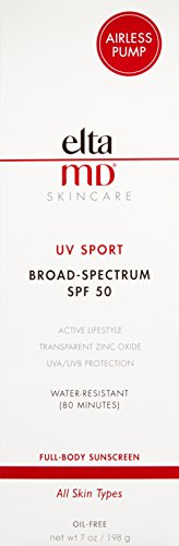 EltaMD UV Sport SPF50 7 oz is great for swimmers, skiers, runners, golfers and other athletes - or for those who just love to be outdoors! UV Sport is water-resistant so it won't rinse off in water or drip into your eyes and sting when you sweat.Feature