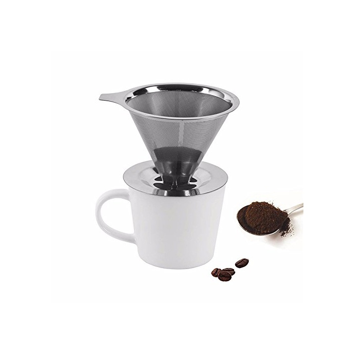 Pumpumly 커피 드 re파 스테인레스 필터 일체형 이중 구조의 스테인레스 필터 큰 2-4명 분