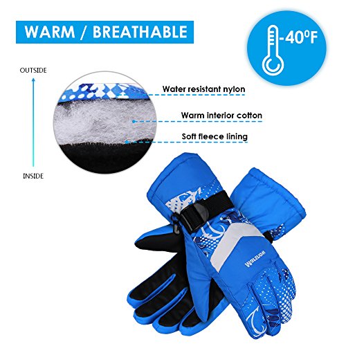WATERFLY ENJOY YOUR LIFE We focus on outdoor products. We are devoted to quality. Description WATERFLY Ski Gloves for Men Women 1.Premium water resistant material always keeps your hands fresh and dry. 2.Anti-slip palm allows easy grip for ski poles, bicycle handles and other equipment. 3.Padded cotton adds extra warmth and comfort for your hands. 4.Fleece lining makes it much comfortable and allows your hands move freely inside it. 5.Elastic wristband prevents cold air inside and keeps hands warm all day long. 6.You can adjust the wrist strap to fit your hands well according to your needs. 7.Anti-lost buckle can connect the pair of gloves easily and you'll never worry one of them getting lost. 8.Ideal for most winter sports like cycling, skiing, skating, etc. Specifications Dimensions: L - For Men 11 x 4.3 inches / 28 x 11cm Weight: 0.26lb. / 120g M - For Women 9.8 x 3.9 inches / 25 x 10cm Weight: 0.24lb. / 110g Warranty If you have any issues with our products, please feel free to contact us. Package Included 1 x Pair of WATERFLY Ski Gloves 0 |