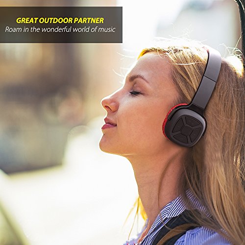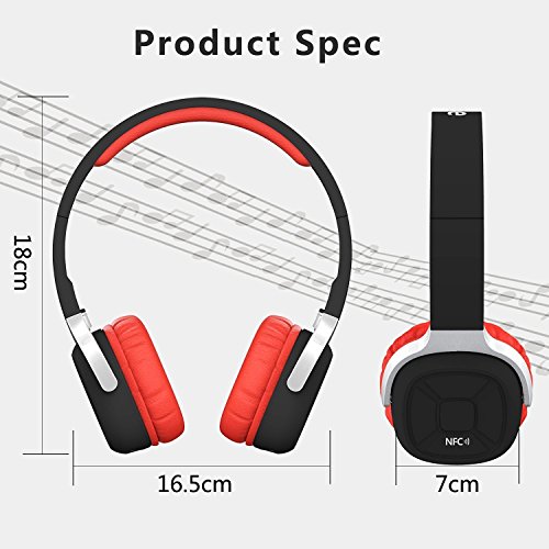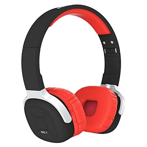 Wireless Over Ear Headphones,Techwish Portable NFC Stereo Bluetooth 4.1 Foldable Headset with Hands-free with Microphone and Pedometer Earphones 2 in 1 (red)