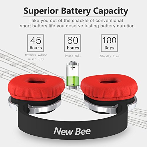 Good battery --- With 800mAh high capacity rechargeable build-in lithium battery, the wireless headphones last up to 60 hours talking time, 45 hours music time and 180 days standby time. Effortless touch controls allow for simple command of your music and calls. Easily skip songs, change the volume and take calls right from the headphones.