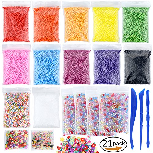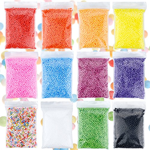 - PACKAGE INCLUDE: 12 pack foam beads(12color,about 54000 pcs), 4 pack fishbowl beads(mixed color),1 pack flower fruits slices(about 200 pcs),1 pack cake slices(about 200 pcs), 1 set tools(3 pcs).