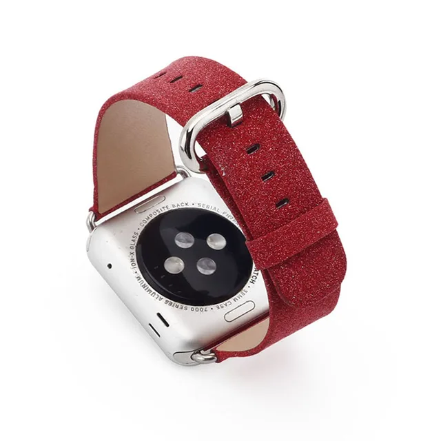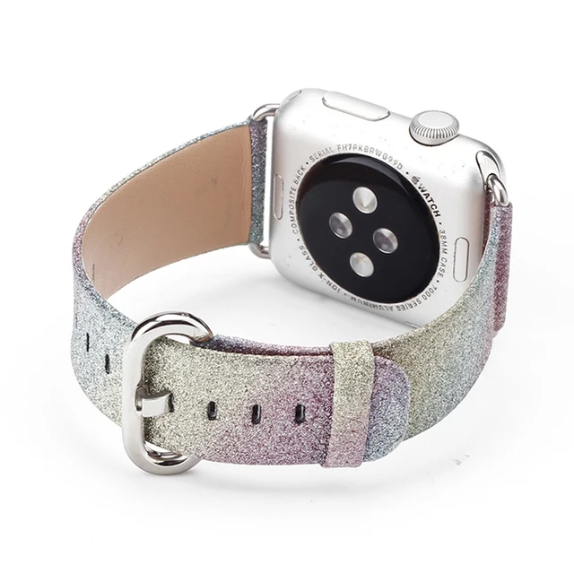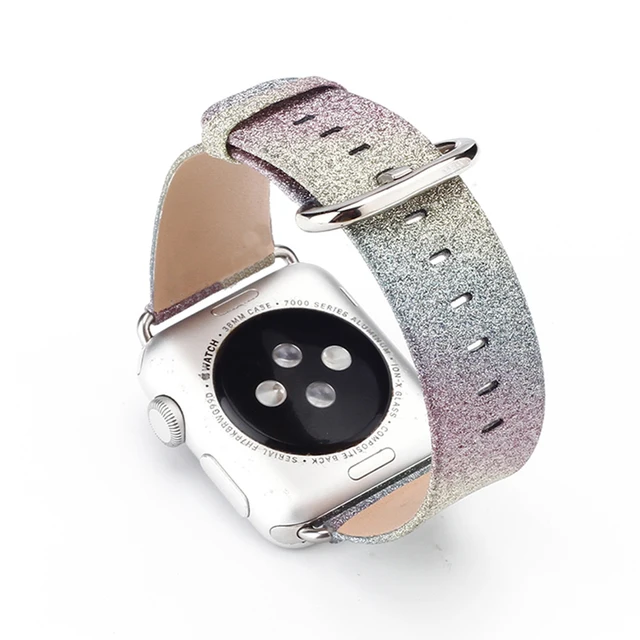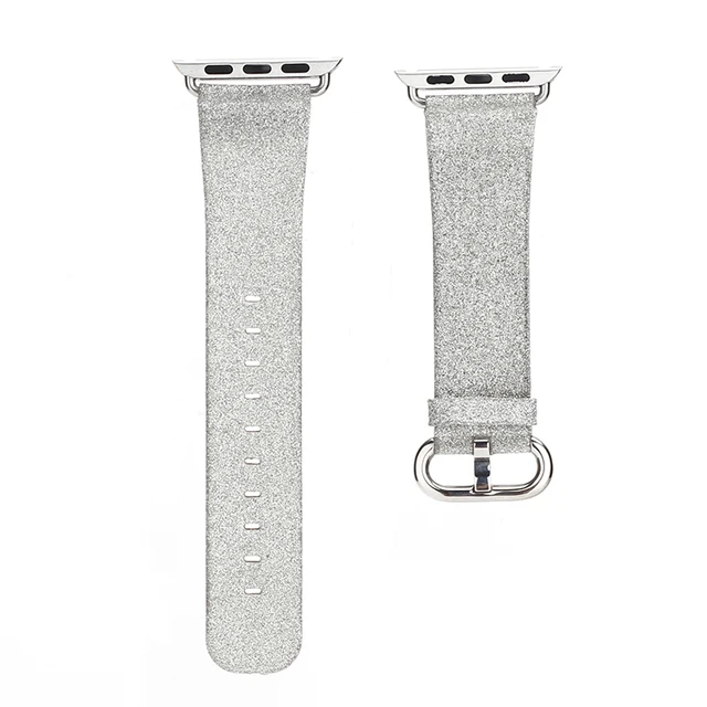 상품 내용 럭셔리 윤기 블링 크리스마스 PU 가죽 시계 밴드 애플 시계 38/42 미리메터 iwatch 스트랩 골드 실버 녹색 블루 레인보우.