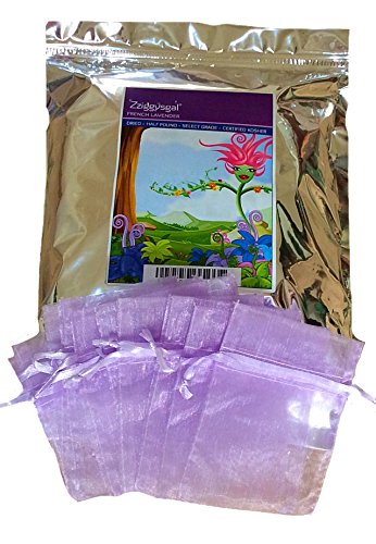 Zziggysgal Brand includes 10 plum colored drawstring Sachet bags with a half pound of fresh dried lavender, factory sealed in a triple foil food-safe bag with zipper closure. The complementary sachets are included in the sealed triple foil bag. SATISFACTION GUARANTEED OR YOUR MONEY BACK.Feature