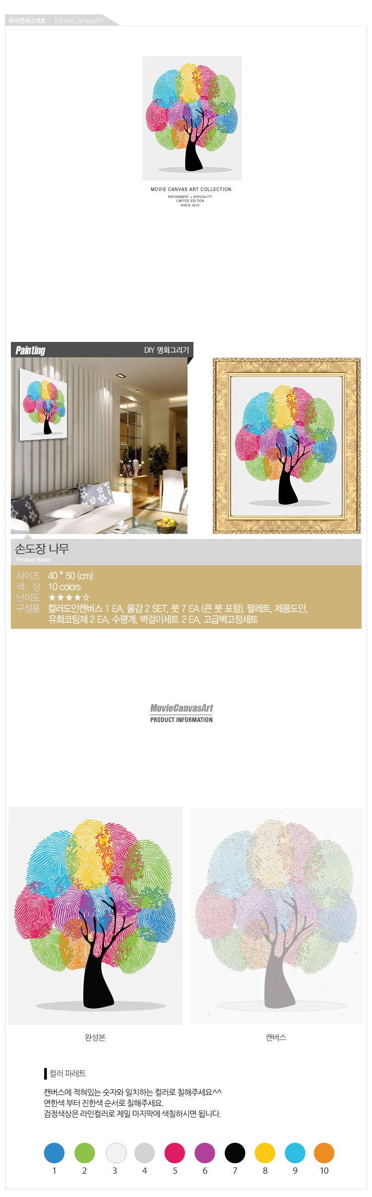 (물감2배, 컬러캔버스, 손, 도장, 나무)