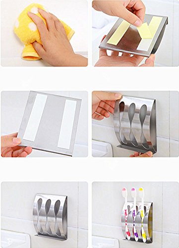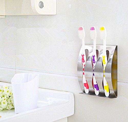 Kinteshun Stainless Steel Stick-on Toothbrush Razor Holder,Self-adhesive Wall-mounted Stand(1pc,3-holed)