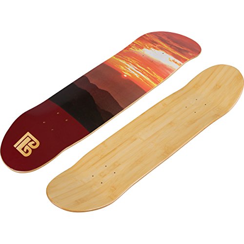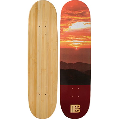 -. Binding : Sports -. Brand : Bamboo -. Feature : Bamboo skateboard decks are made from the highest quality bamboo resulting in longer lasting durability and performance / Built with 6 ply bamboo and maple wood which improves the board sustainability to become an ideal deck for any skill level / Affordable pro skateboard deck with a unique sunset design and heavy duty build so riders can get the most pop while skating in style / Deep concave deck for premium control while riding, doing tricks, and taking hard turns that most decks can not handle / Comes in multiple sizes for all levels 7.75" x 31.5", 8" x 31.75", and 8.25" x 32" -. Label : Bamboo Skateboards -. Manufacturer : Bamboo Skateboards -. Model : 1-01-029-03-00-Parent -. ProductGroup : Sports -. ProductTypeName : OUTDOOR_RECREATION_PRODUCT -. Publisher : Bamboo Skateboards -. Studio : Bamboo Skateboards -. Title : Bamboo Skateboards Sunset Graphic Skateboard Deck with a 6 Ply Bamboo and Maple Hybrid Build
