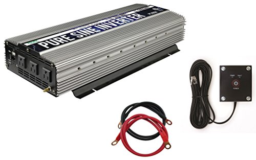 Power Tech-On PURE SINE Power Inverter 2000W Continuous/4000W Surge, 12V DC to 120V AC w/ Black and Red Cables w/ Ring Terminals, Remote Switch, 5 kinds of Protection Systems and 4 Output Sockets