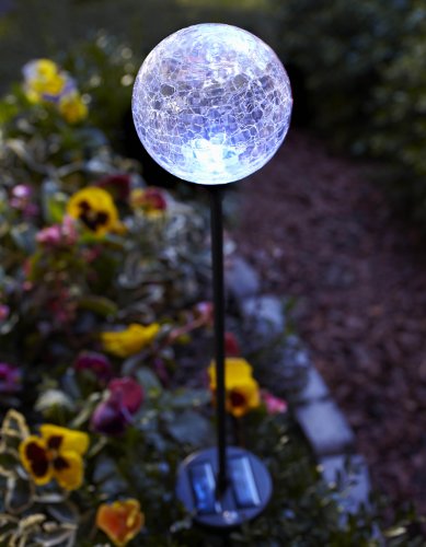 DURABLE SOLAR POWERED PATH LIGHTS: the glass globes of these solar power path lights are made of thick, crackled glass which can withstand rugged outdoor use