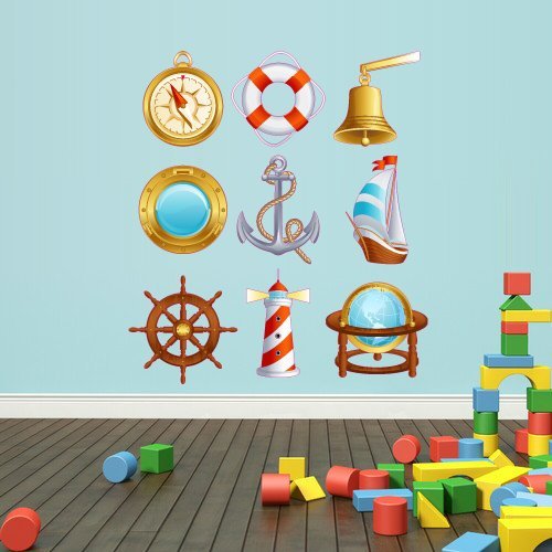 -. Title : Full Color Wall Vinyl Sticker Decals Decor Art Bedroom Design Mural Kids Nursery Cartoon Naval Nautical Marine Ocean Set Bathroom (Col76)