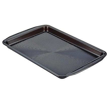 [Product Information]- The cookie pan features sturdy carbon steel construction with warp-resistant, rolled-rim design for beautiful, long-lasting baking performance