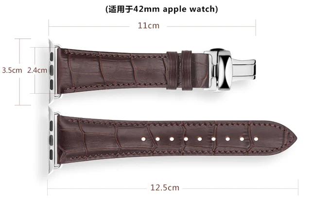 | [해외]Goosuu 정품 송아지 시계 스트랩 스테인레스 스틸 어댑터 38mm42mm 대한 iwatch 가죽 apple watch butterfly 버클 스트랩 밴드 |