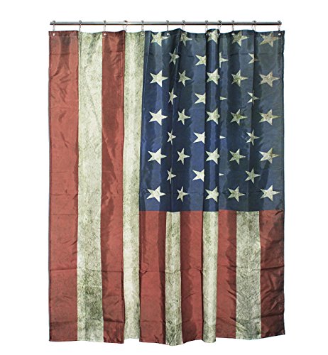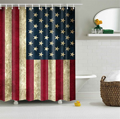 72 X 72 inch American Flag Print Polyester Shower Curtain,Mildew Resistant and Waterproof with 12 Hooks