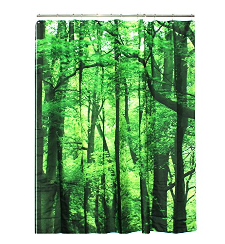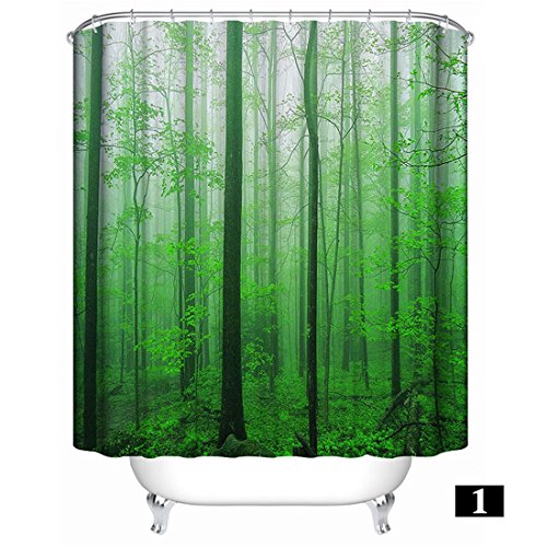 72×72 inch Green Forest Shower Curtain,3D Digital Print Mildew Resistant and Waterproof Bathroom Curtain with 12 Steel Hooks
