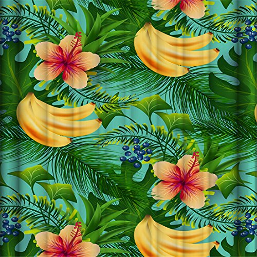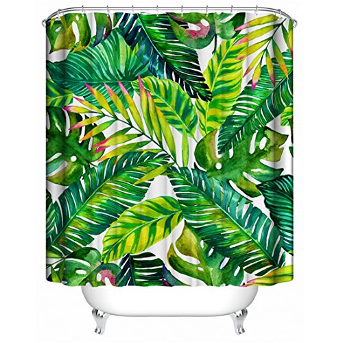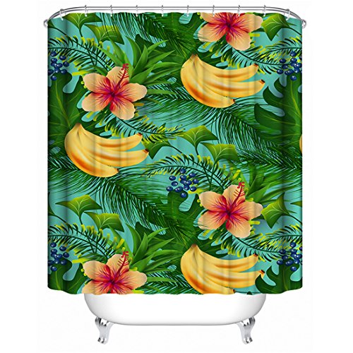 Creative Print Cool Fabric Shower Curtain,3D Mildew Resistant and Waterproof Bathroom Curtains,72 X 72 inch with 12 Steel Hooks (Banana leaves)