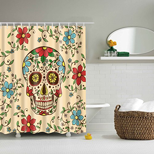 Creative White Sugar Skull Fabric Shower Curtain Candy Skull Print Mildew Resistant Waterproof 72 X 72 inch with 12 Steel Hooks (white skulls)
