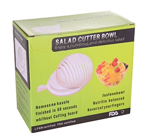 Studio : Ksun Publisher : Ksun Product Description Everyone loves a fresh, healthy salad.But to prepare a salad at home, you have to wash and rinse the lettuce, slice and chop all of the ingredients, then slice and chop some more.You will get one 60 second salad maker(BPA-free) and easily rinse, chop and serve almost any salad in seconds! The unique slits take all the hassle out of rinsing and straining and allow you to chop the ingredients all at once!It's the easy way to healthy , fresh salad everyday.